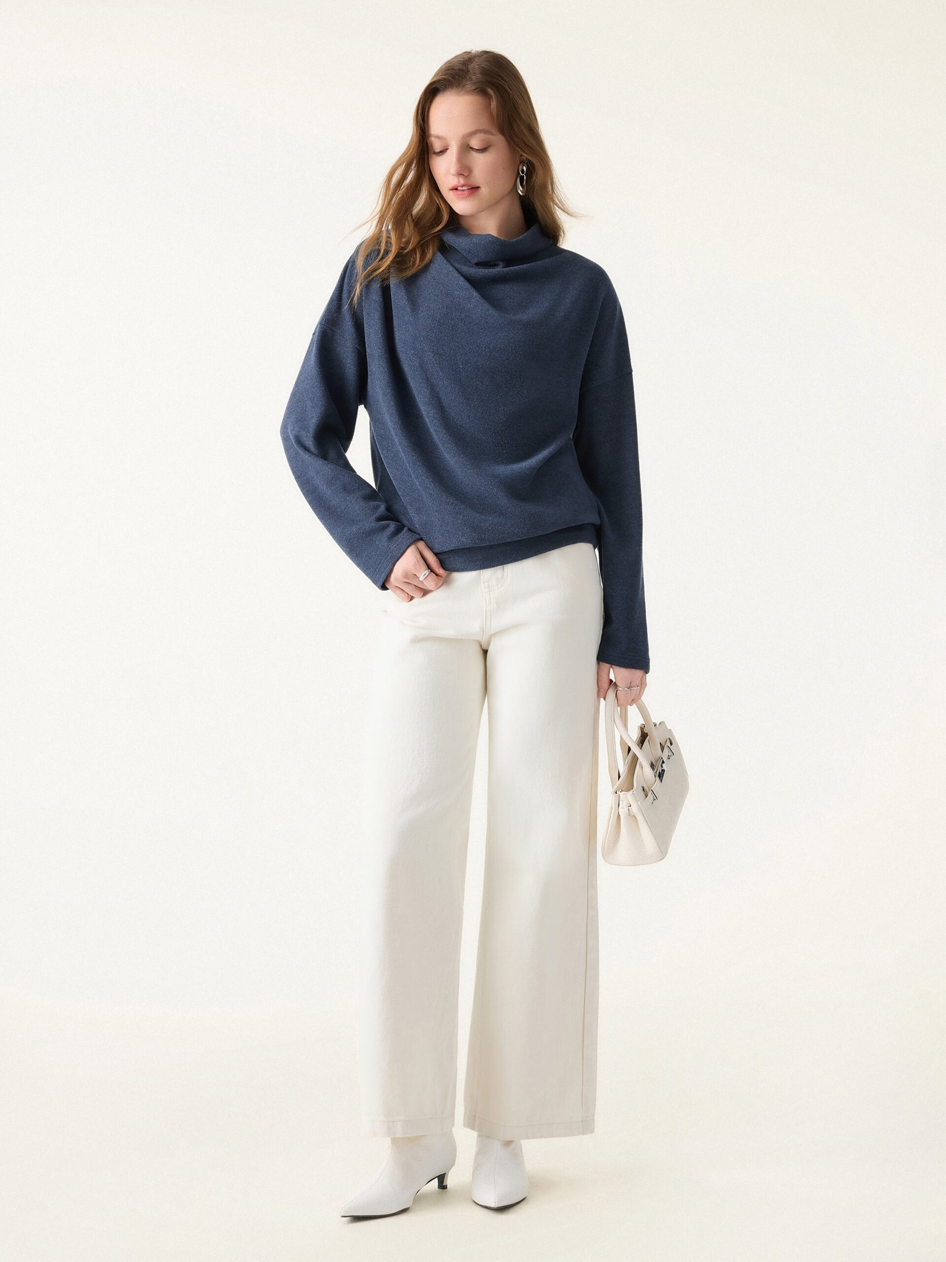 Gemütliches, lässiges Oberteil mit Stehkragen und Bündchen am Saum