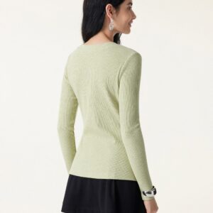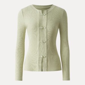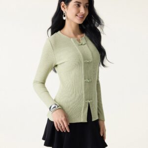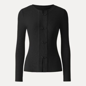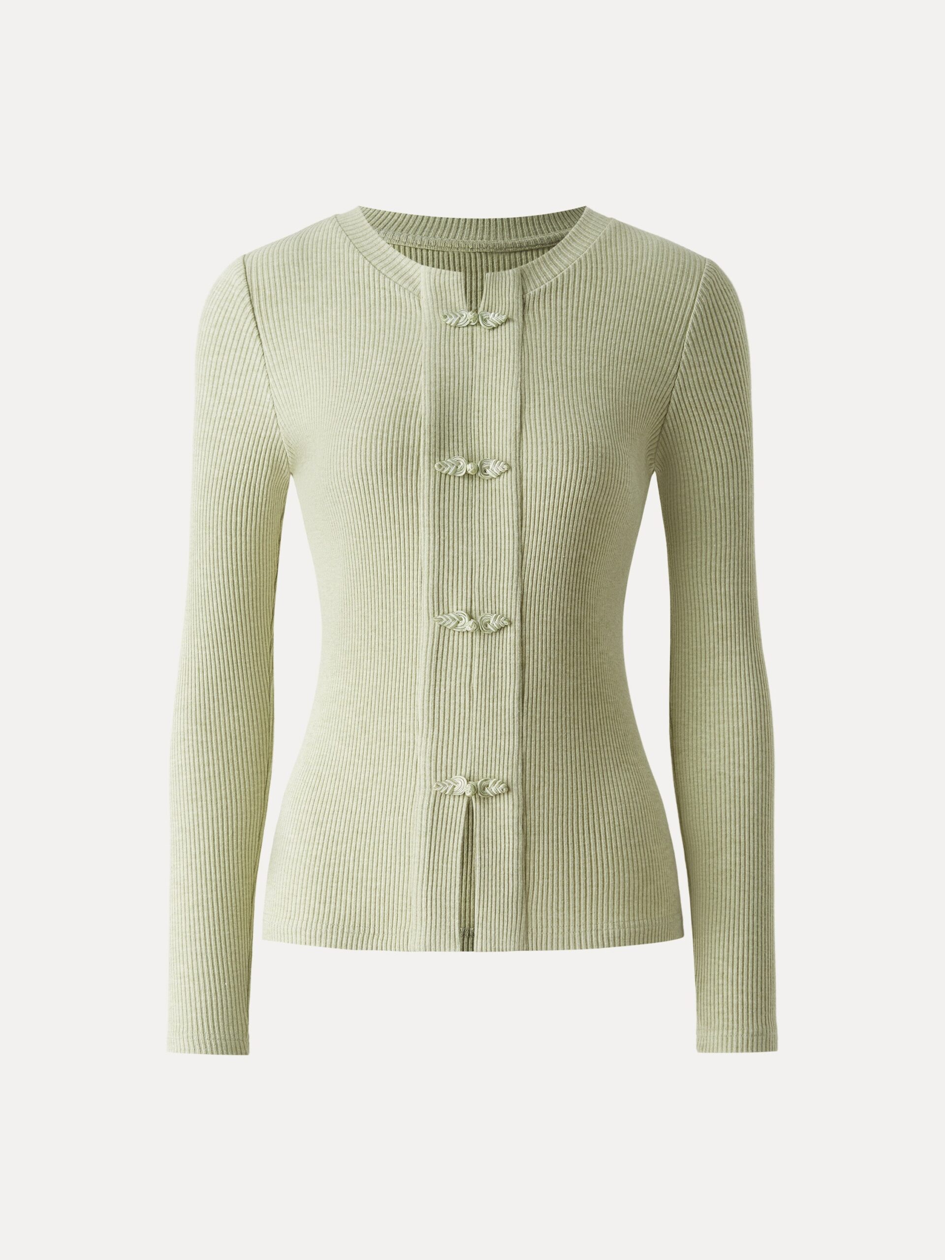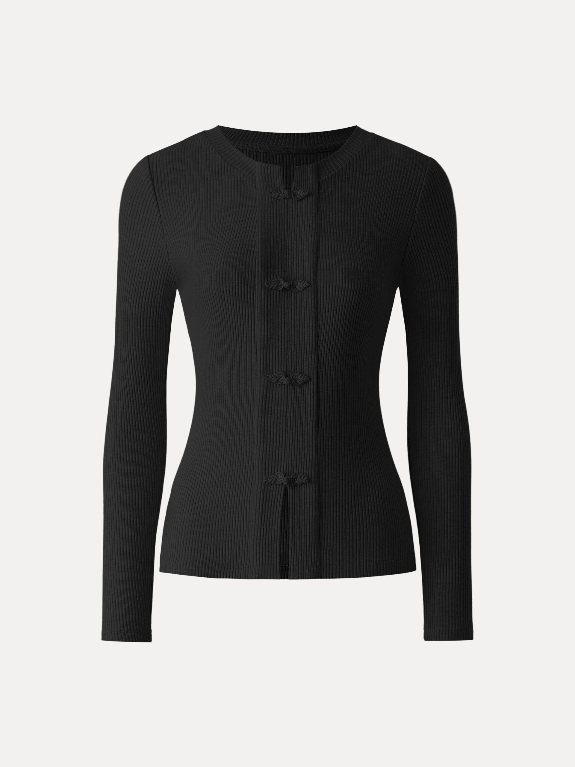 Geripptes Langarmshirt mit Froschknopfverschluss, Rundhalsausschnitt und Knopfleiste