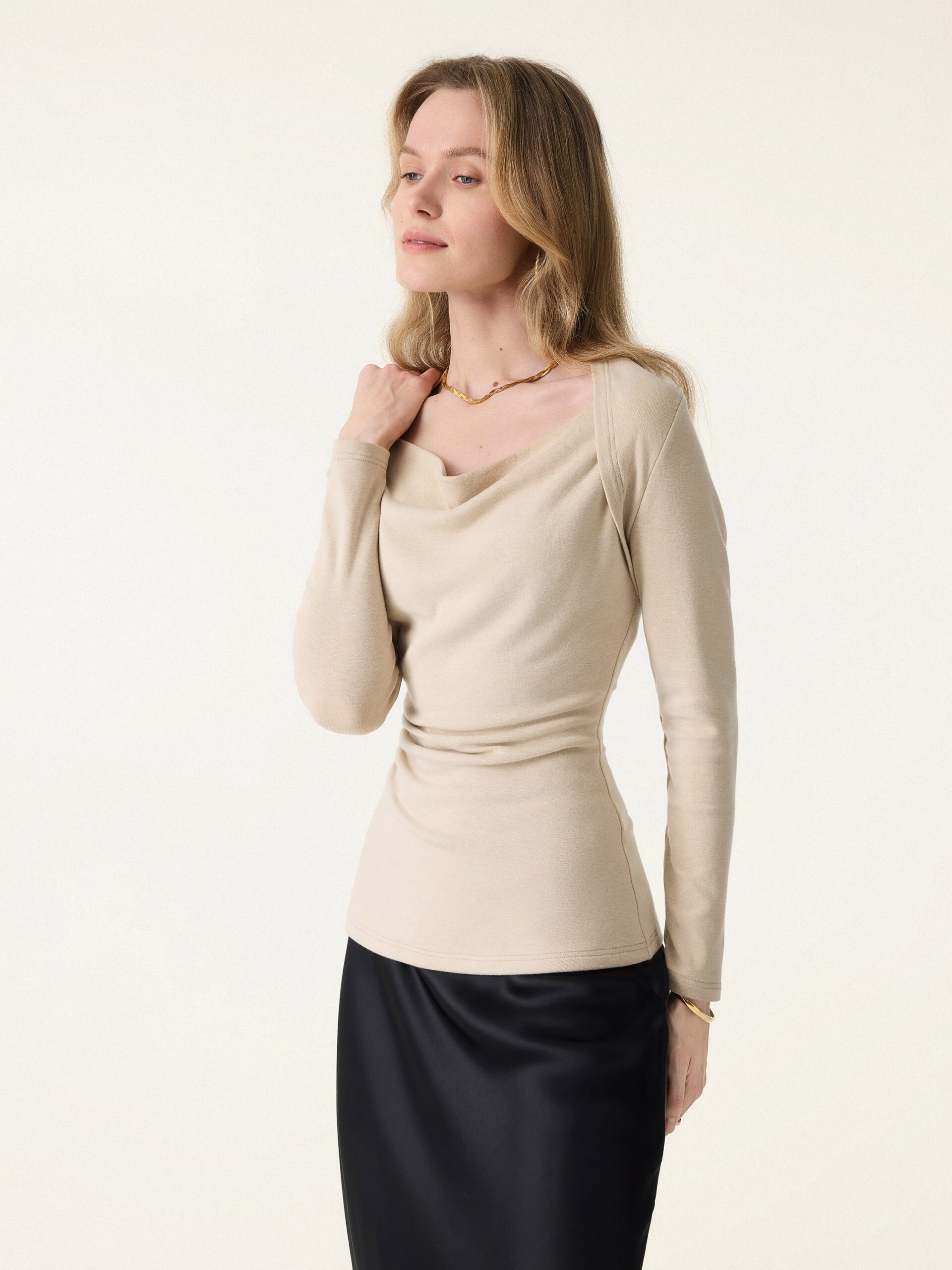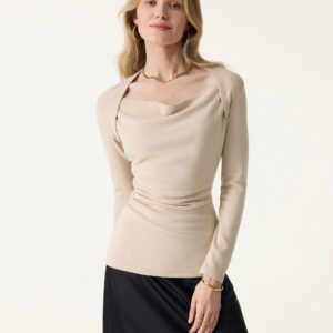 LiteWarm Top mit Wasserfallausschnitt und geraffter Taille