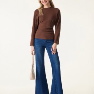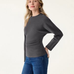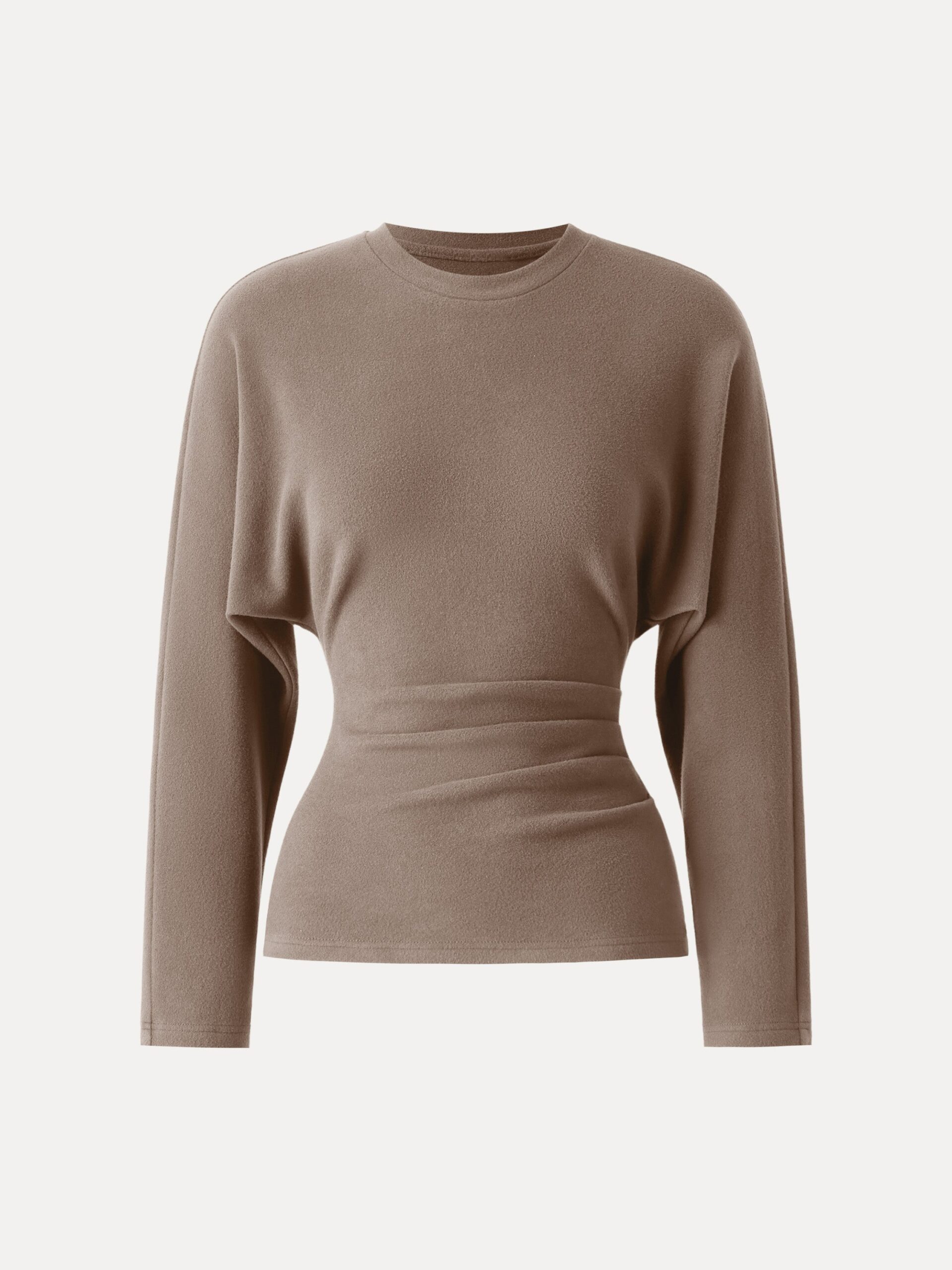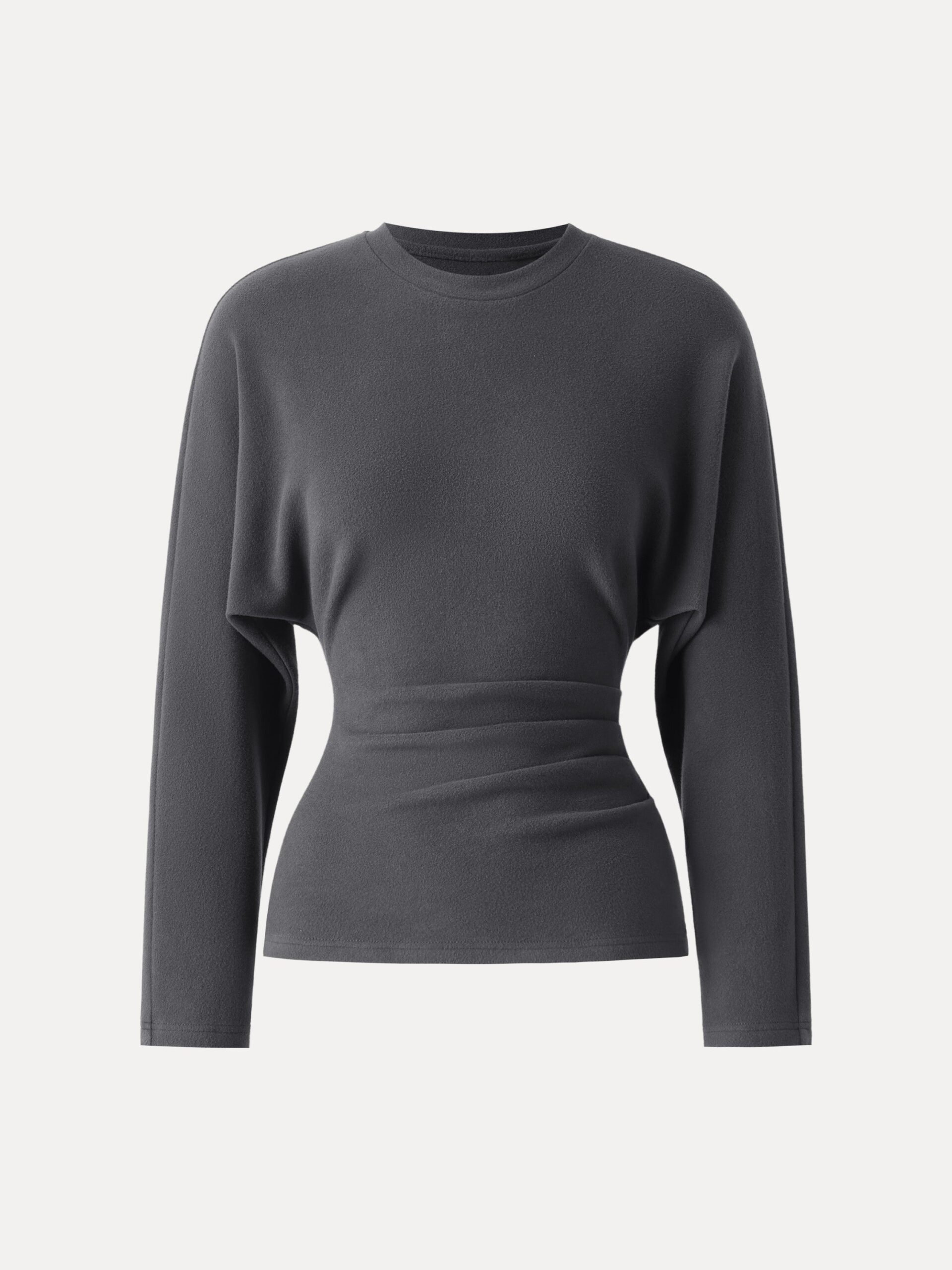 MaxWarm Rundhals-Top mit tailliertem Schnitt und Fledermausärmeln